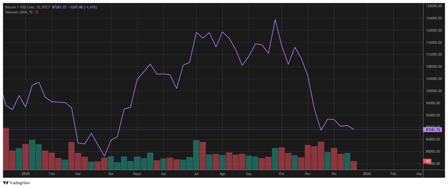 Transitando los últimos días de diciembre, se percibe cierta estabilidad. Bitcoin cotiza en torno a los USD 86.500 al 27 de diciembre, y el precio era casi el mismo 7 días atrás. En el medio, tocó efímeramente los USD 90.000.