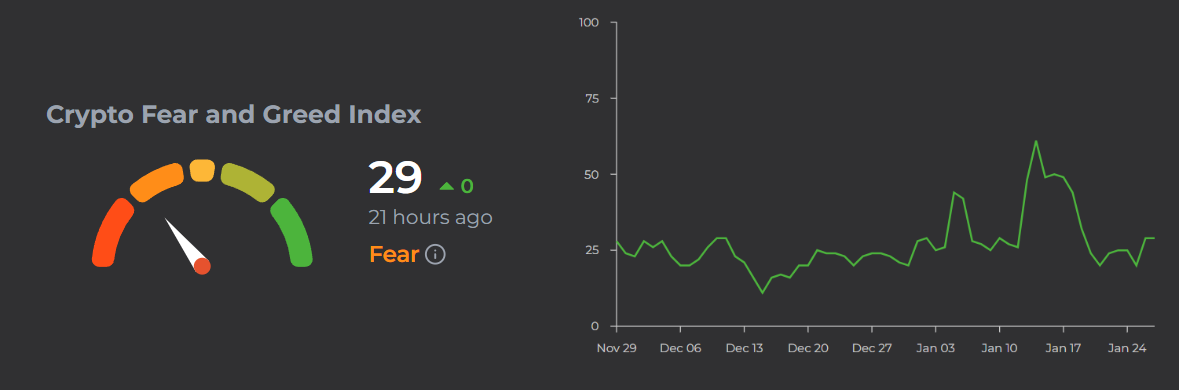 Mientras tanto, indicadores como el Fear and Greed Index se ubican en “miedo” y el Alt Season Index marca 29/100, con una clara preferencia hacia Bitcoin por sobre criptomonedas alternativas o “altcoins”. Son señales de expectativa y de que el mercado alcista, al menos por ahora, parece lejano.