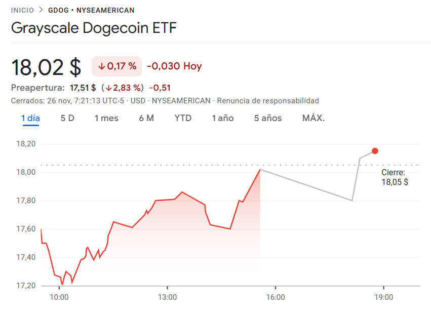 Las opciones actuales incluyen a Bitcoin, Ether, Ripple, Solana y Litecoin. El 24 de noviembre, Dogecoin se sumó a esta lista, con el debut del ETF de Grayscale, GDOG, en la bolsa de Nueva York (NYSE), en Estados Unidos.